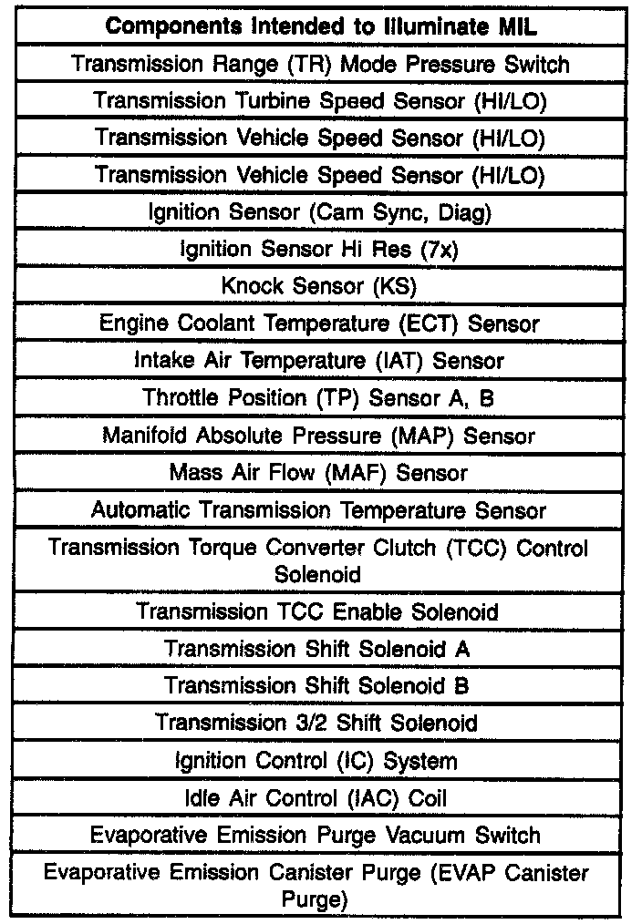 Comprehensive component monitoring diagnostics are required to monitor emissions-related input and output powertrain components. The California Air Resources Board (CARB) On Board Diagnostics II (OBD II) Comprehensive Component Monitoring List Of Components Intended To Illuminate The Malfunction Indicator Lamp (MIL) is a list of components, features or functions that could fall under this requirement.
