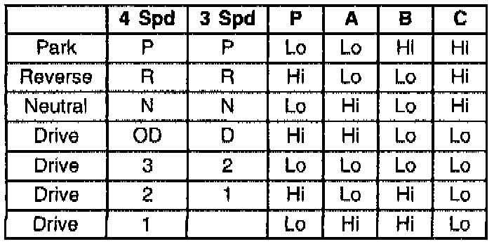 Transaxle Range Switch Valid Input Combinations: