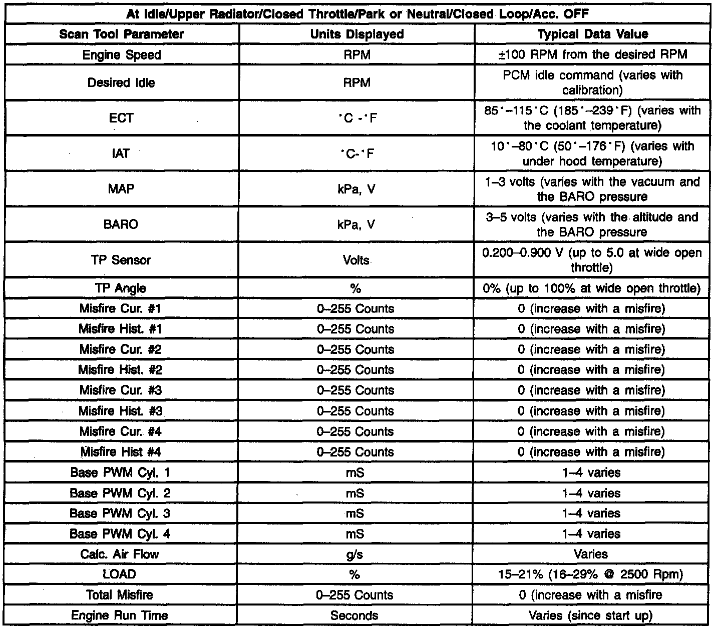 Scan Tool Data - Specific Engine - Misfire Data: