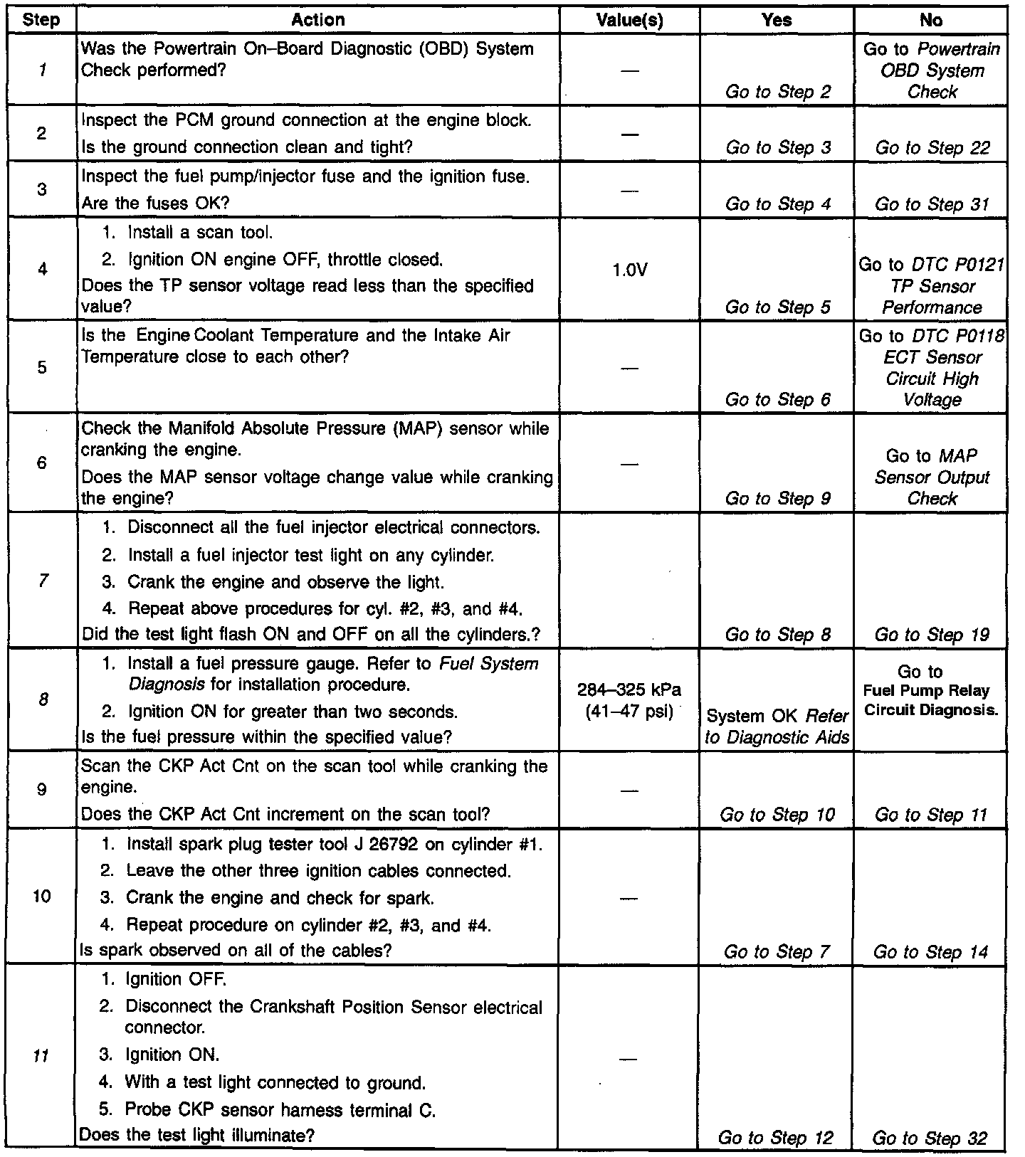 Number(s) below refer to the step number(s) on the Diagnostic Table.