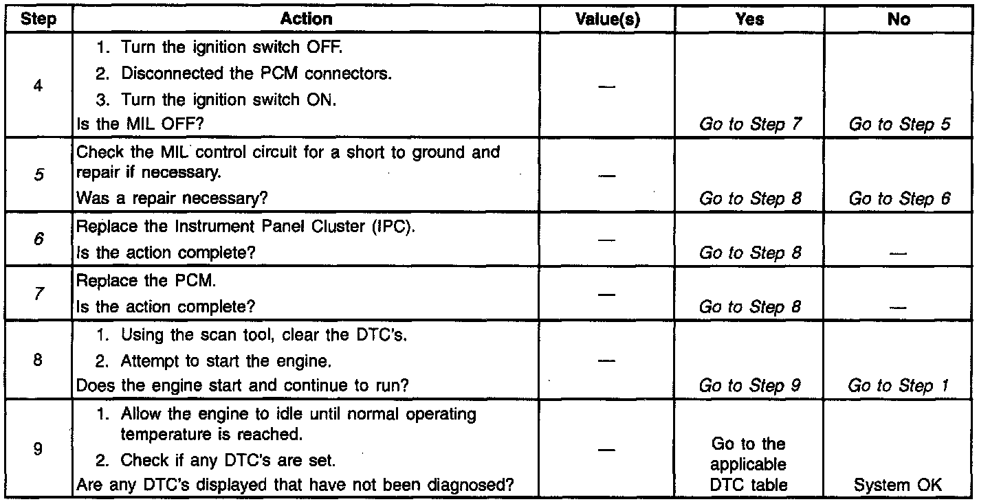 5. A shorted MIL circuit can be diagnosed with a scan tool. Refer to PCM Outputs Dia4nosis.