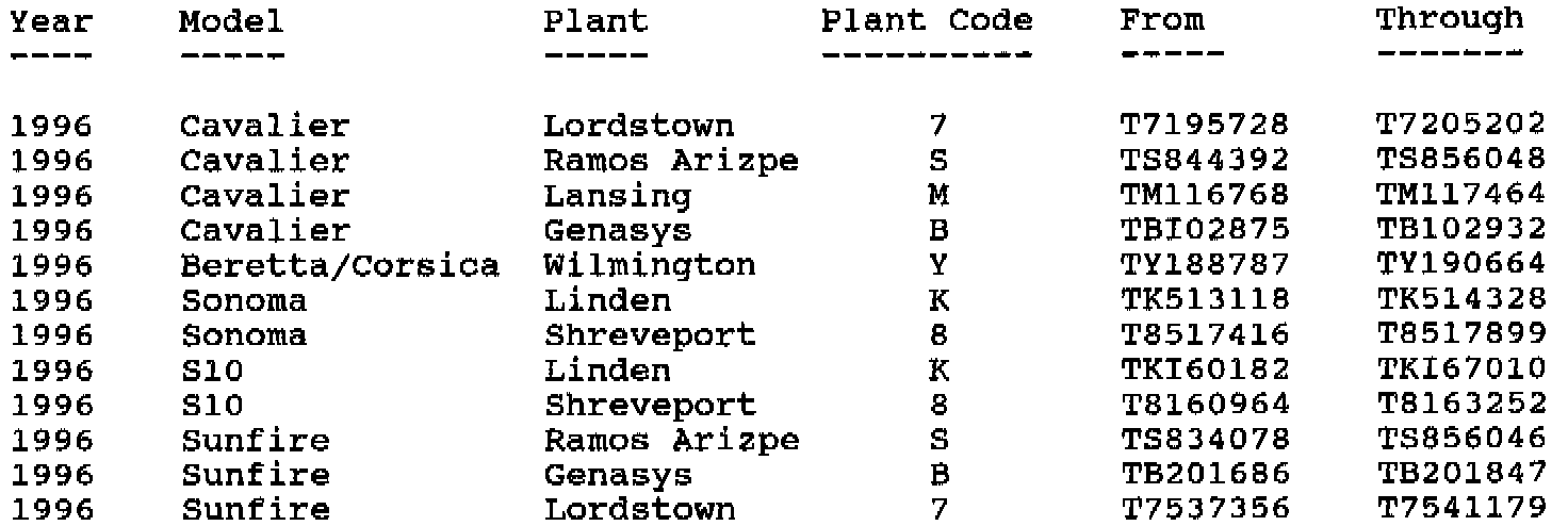 Involved are CERTAIN 1996 model vehicles equipped with the 2.2L (RPO LN2) VIN Engine Code 4 engine, that fall within the VIN breakpoints