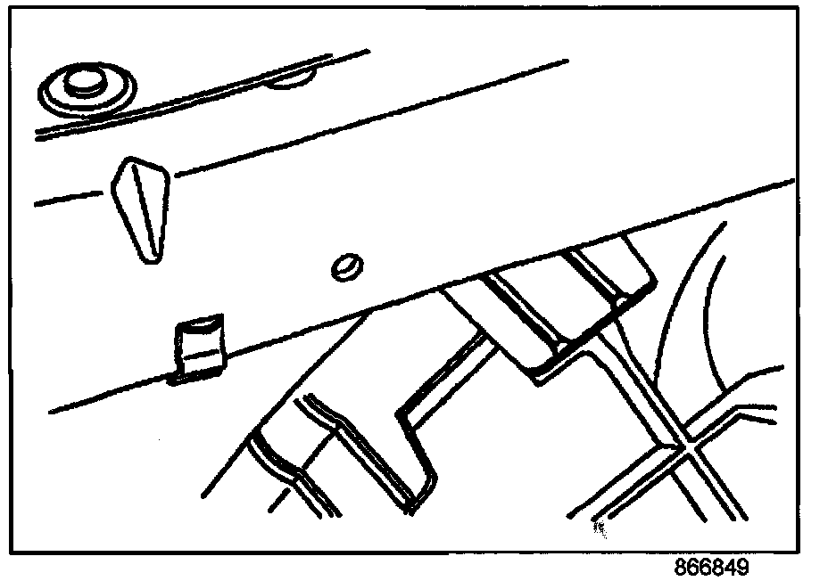 3. Remove the J-nut and using a 6.35 mm (1/4 inch) drill bit, drill a hole in the radiator support at the location marked (2) in the previous step. The above illustration shows the radiator support after the hole has been drilled.