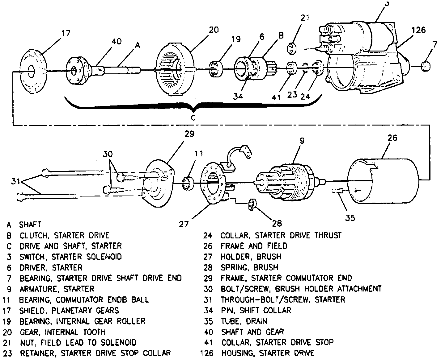 Fig. 2 Exploded View Of AC-Delco PG Series Starter Motor (PG250 Shown):