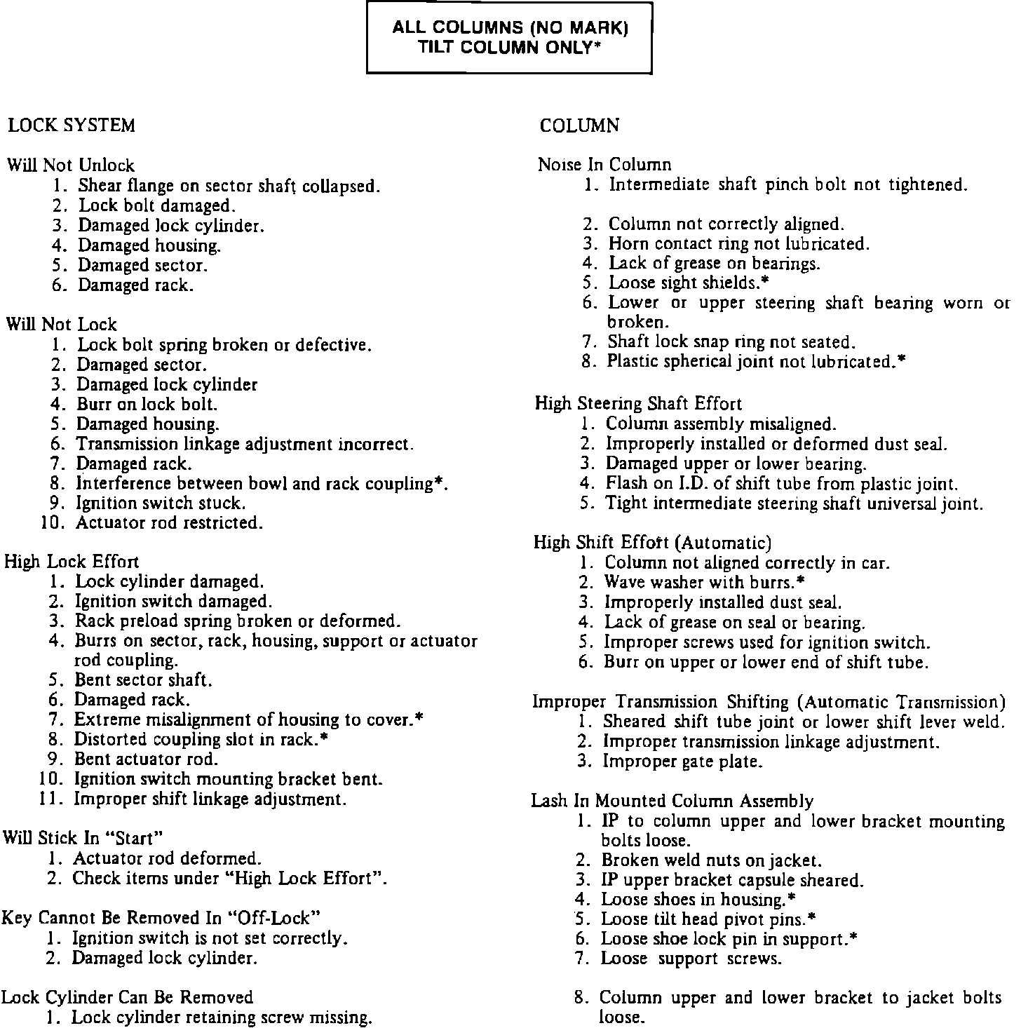 Fig. 2 Steering Column Troubleshooting:
