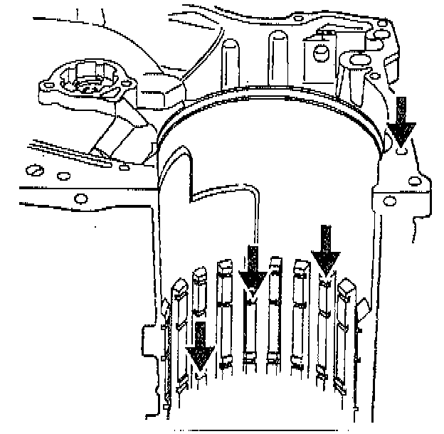 ^ Plugged drain back holes for the torque converter oil seal.