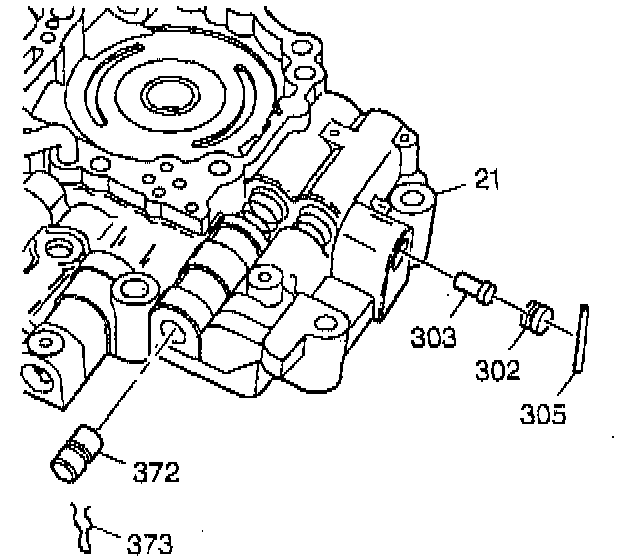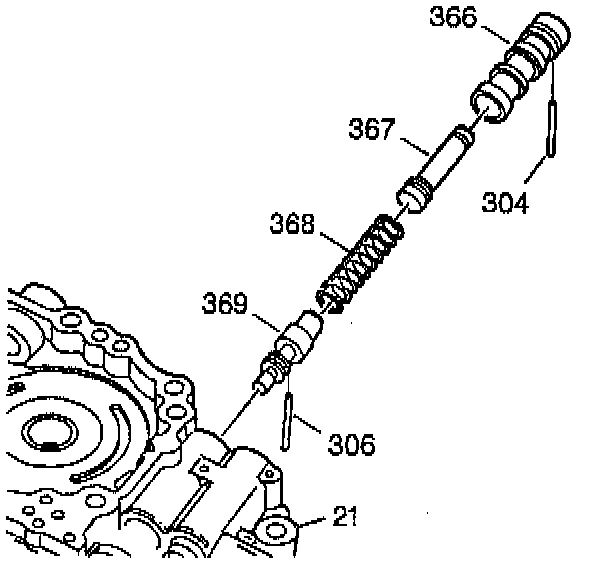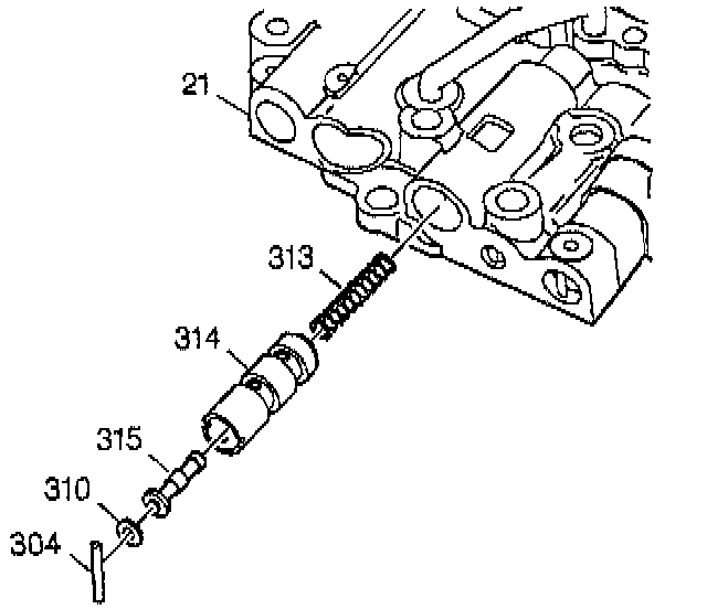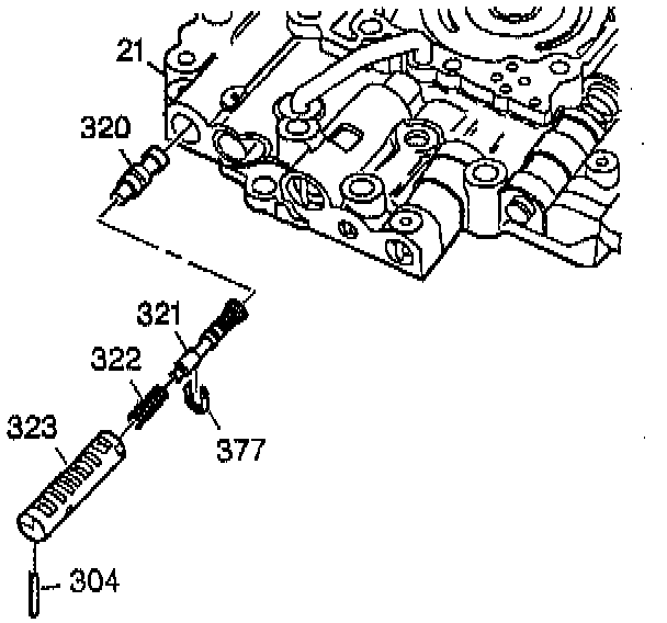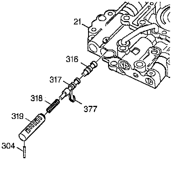 9. Remove the retaining pin (304) from the 2-3 throttle valve sleeve.
