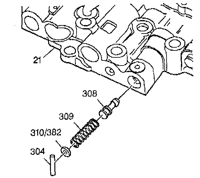 20. Remove the valve bore plug (310\382), the spring (309) and the valve (308).