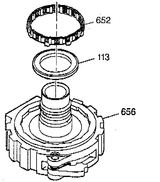 7. Assemble the thrust bearing (113) onto the forward clutch support (656).