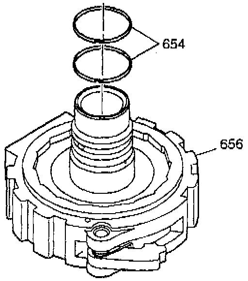 7. Remove and discard the two seals (654) from the forward clutch support (656).