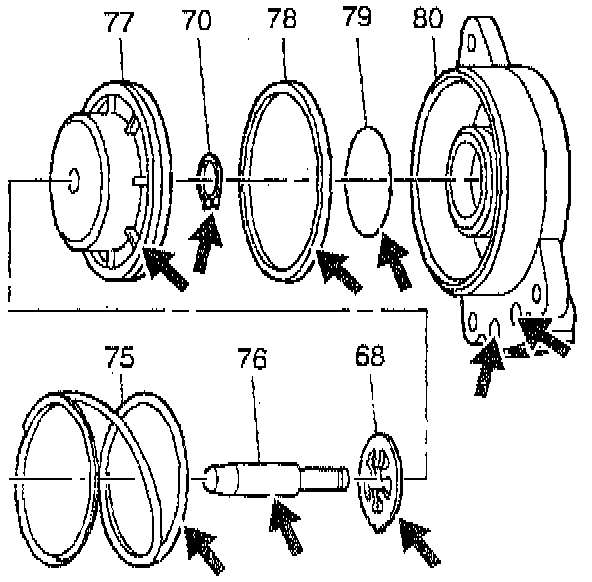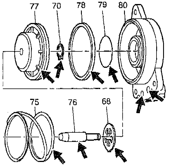 4. Remove the outer (78) and inner (79) servo piston seal from the cover (80).
