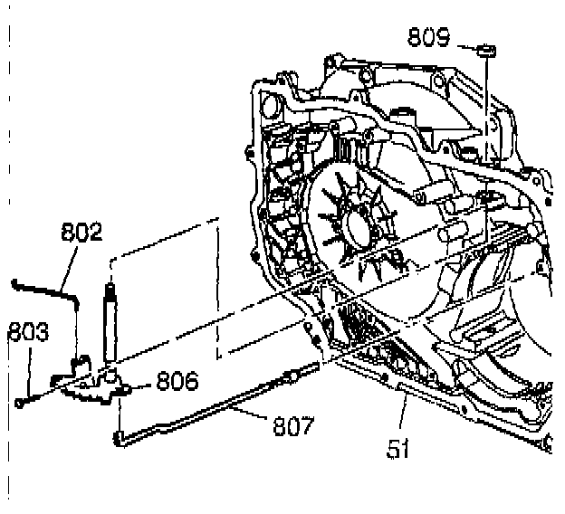 2. With the manual valve to detent lever link (802) and the parking lock actuator assembly (807) attached, install the manual shaft and detent lever assembly (806) into the case.