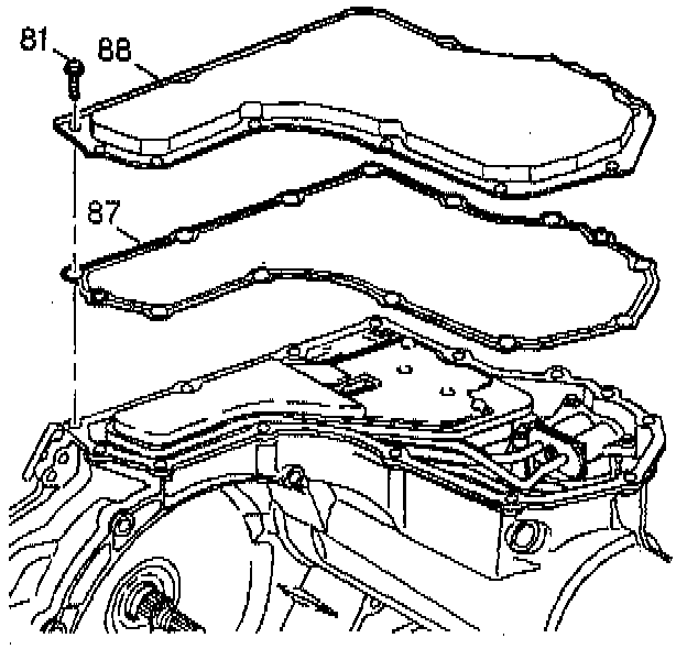2. inspect the gasket (87) for cuts or other damage. The bottom pan gasket is reusable if not damaged.