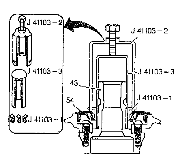 3. Insert the J 44103 puller bridge over the J 44103 support body. Connect the J 44103 puller legs into the slots on the J44103 bridge.