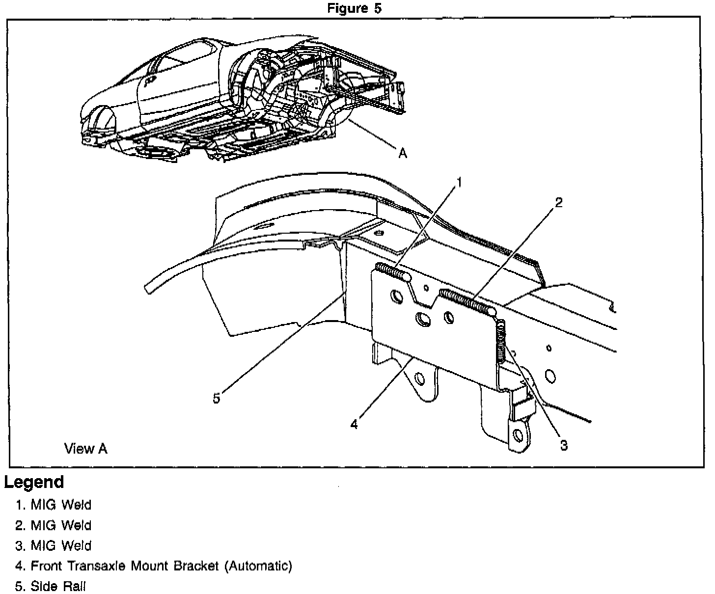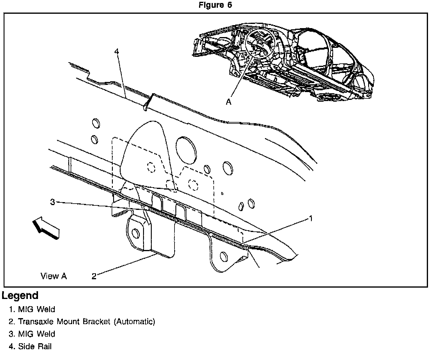 6. Add two additional MIG stitch welds to the automatic transmission bracket in the area depicted in Figure 6.