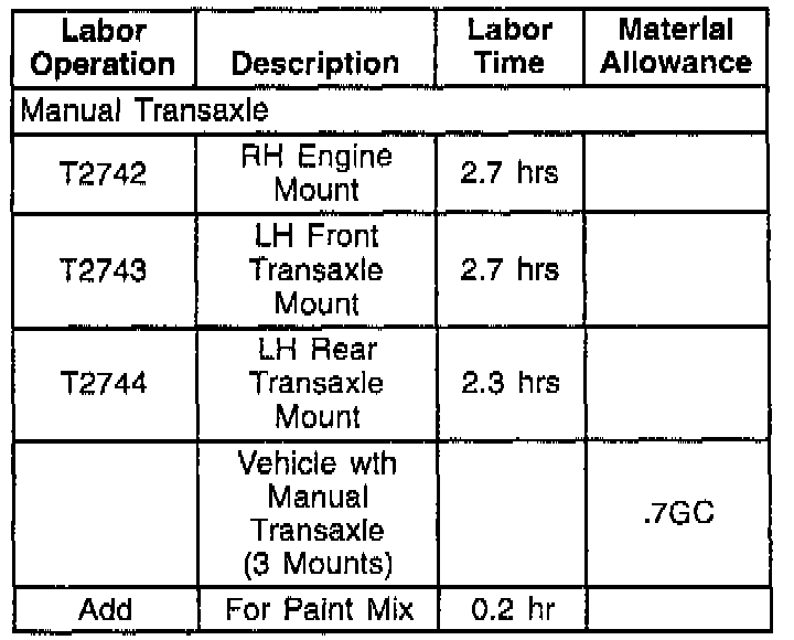 Pry engine/transaxle assembly before and after attempting duplication of noise or excessive movement of assembly. Repeat procedure prying engine/transaxle assembly side to side. If problem area is not located, access each mount assembly for visual inspection of bracket and/or test with pry bar. When the problem area is found, refer to the following respective repair procedures.