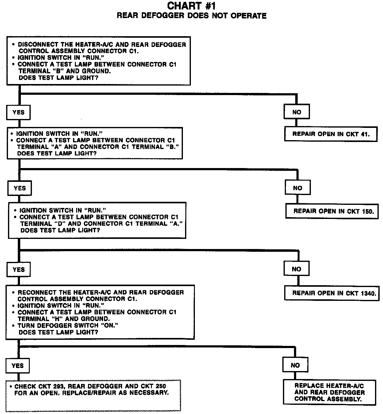 Chart #1 Rear Defogger Does Not Operate: