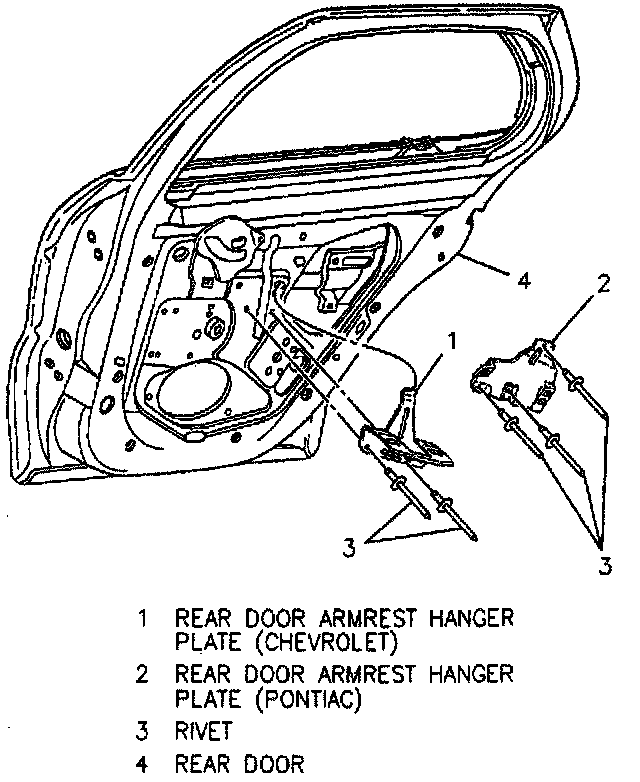 2. Door armrest hanger plate rivets.