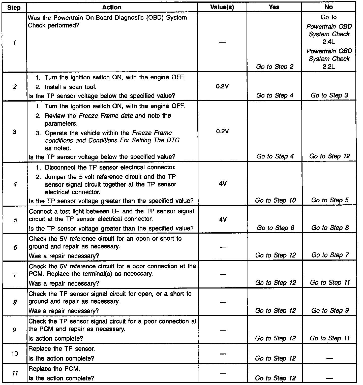 2. The TP sensor has an auto zeroing feature. If the voltage reading is between 0.20V and 0.90V, the PCM will automatically assume this as closed throttle position (0%).
