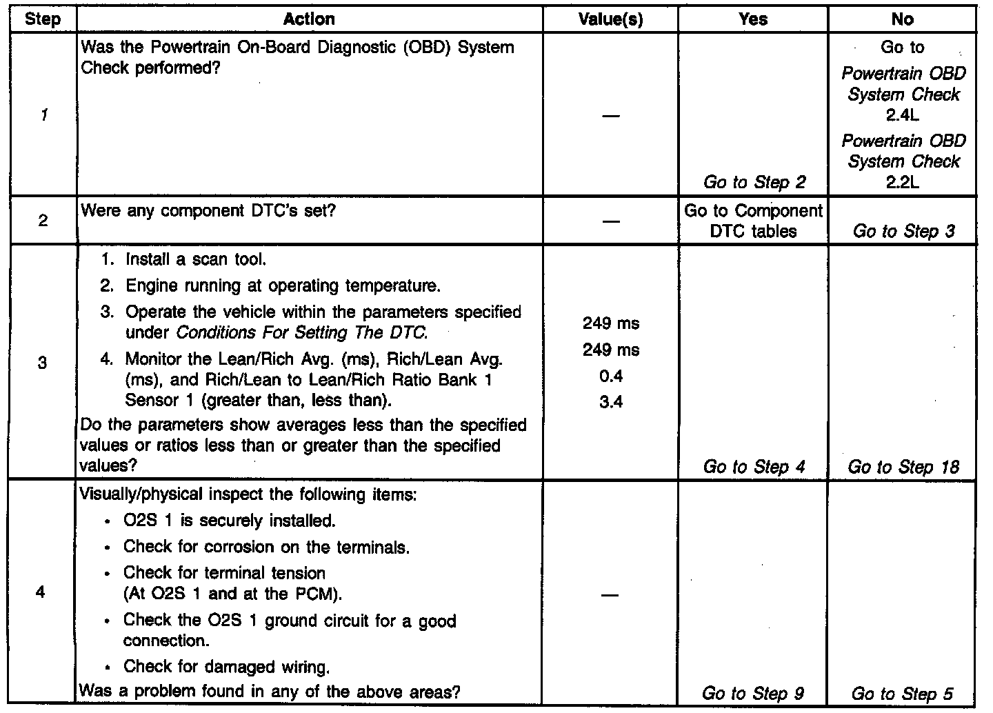 ^ Fuel pressure - The system will go rich if fuel pressure is to high. The PCM can compensate for some increase, however, if it gets too high, a DTC P0133 may set. See Fuel System Diagnosis. System Diagnosis - Fuel System
