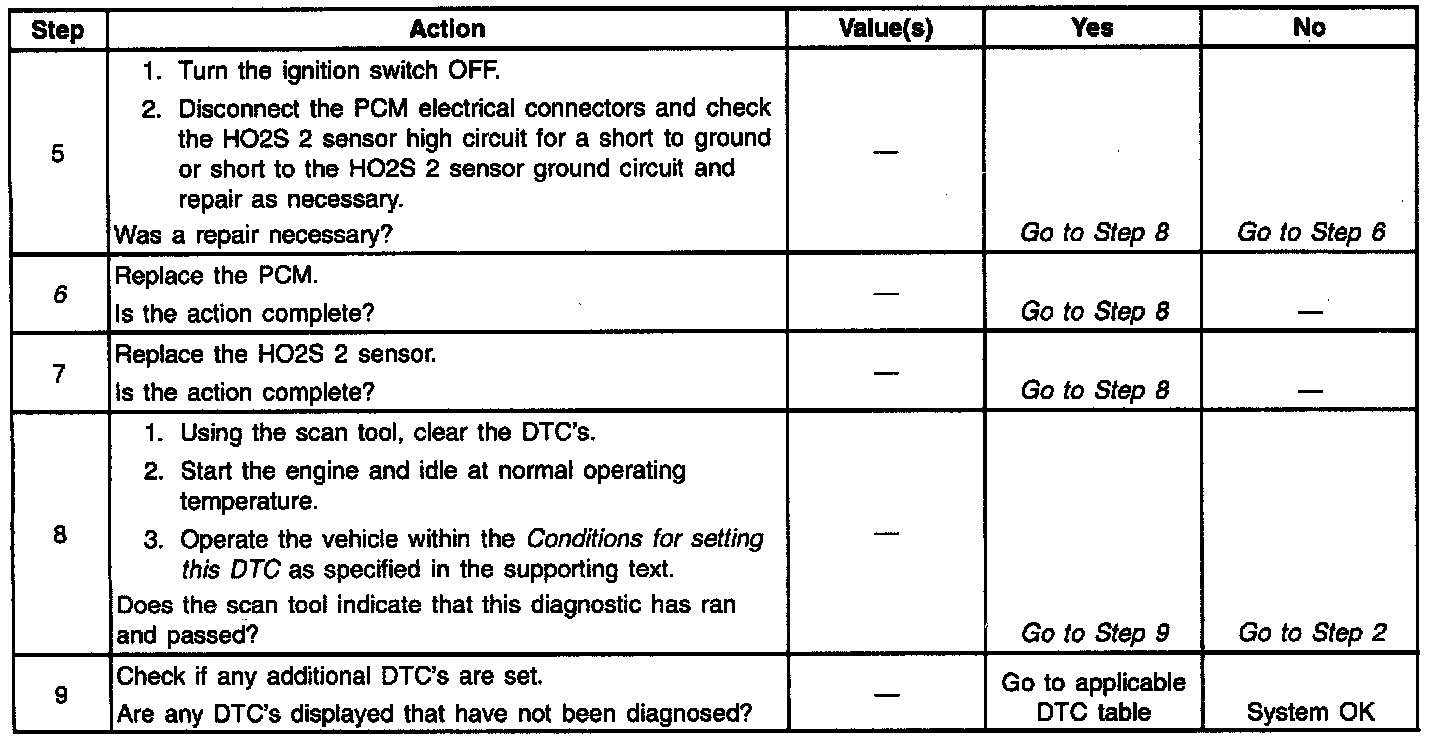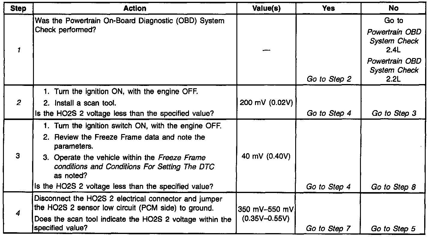^ Intermittent test - Observe HO2S 2 on scan tool while moving related connectors and wiring harness with the ignition ON. If the failure is induced, the HO2S 2 display will change. This may help isolate the location of the malfunction.
