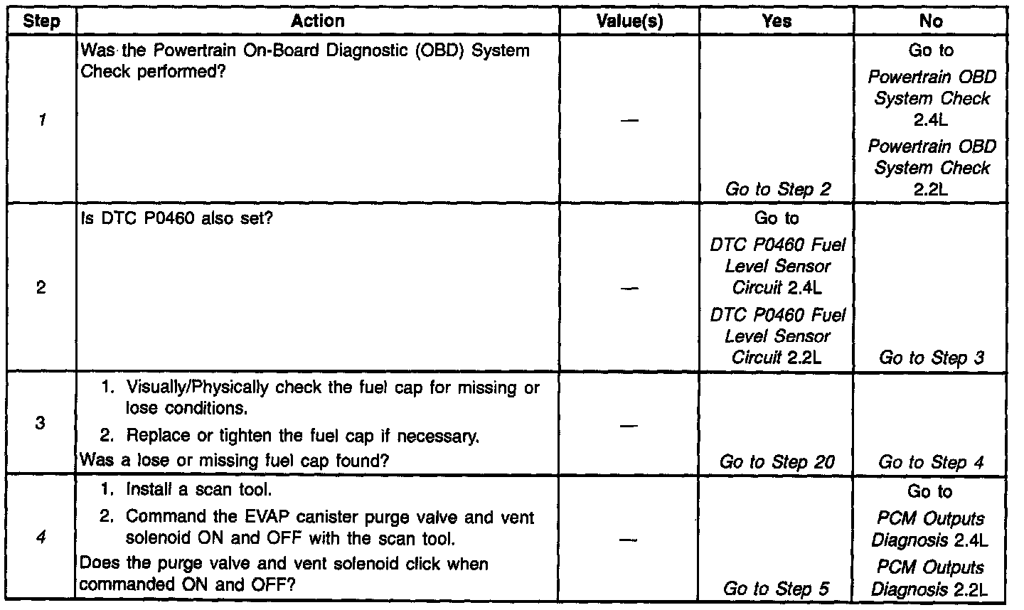4. If a vent solenoid or EVAP canister purge valve electrical fault is present, the purge system will not operate correctly. Repairing the electrical fault will very likely correct the condition that set DTC P0440.