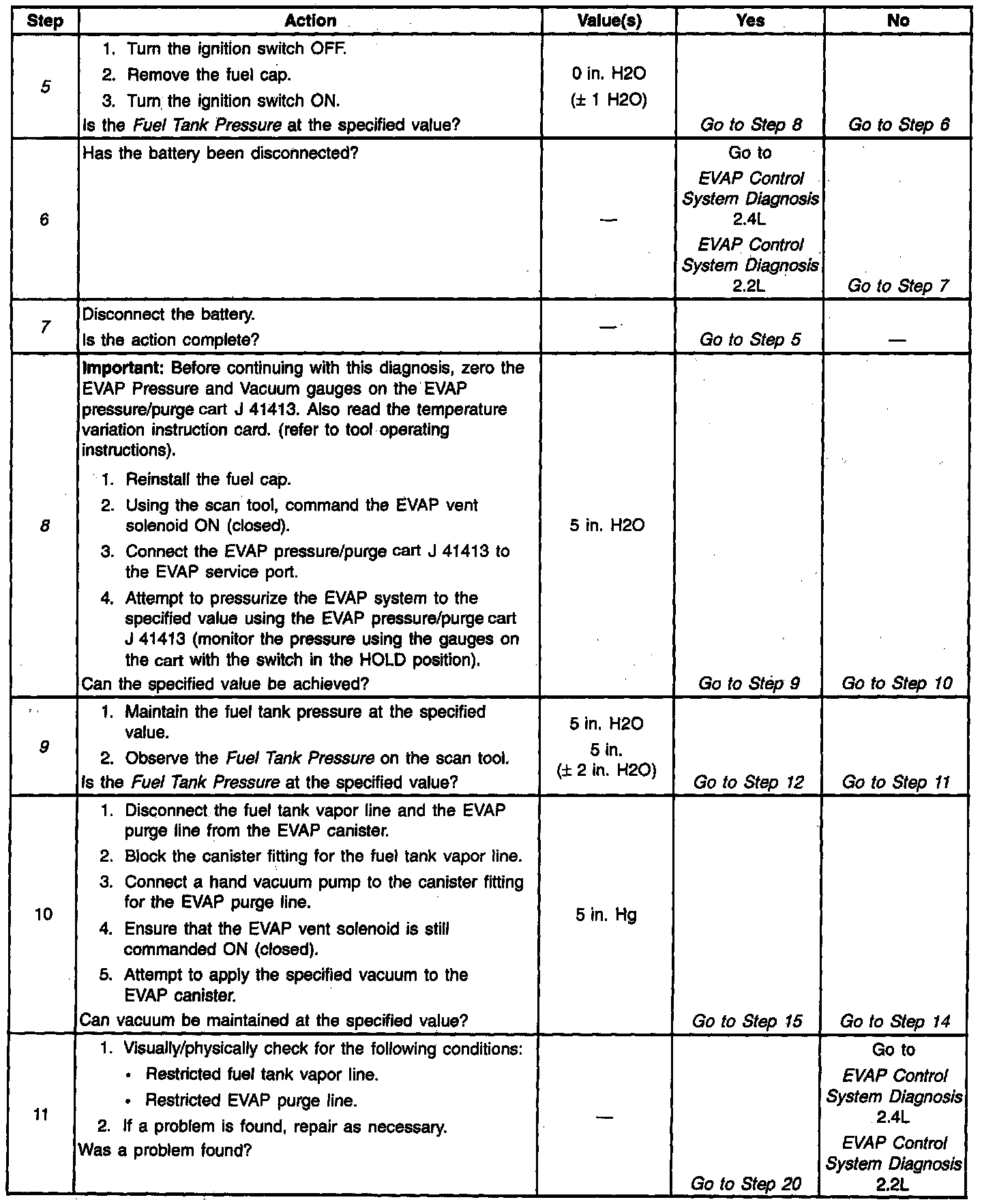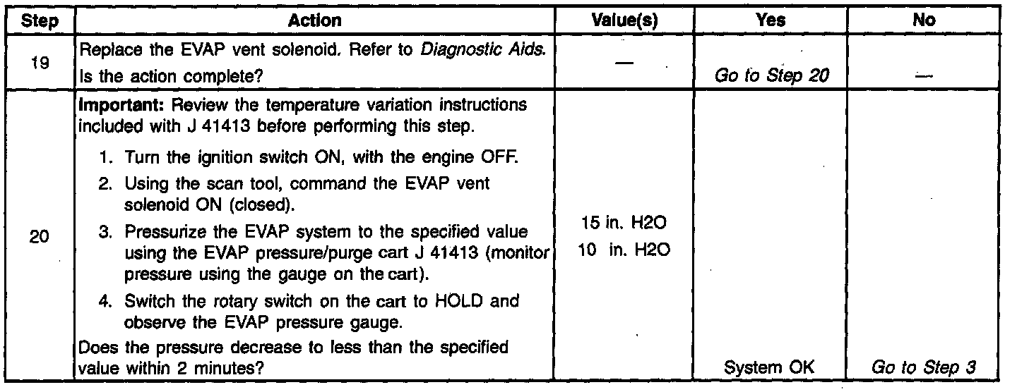 8. Determines whether or not the EVAP system is sealed sufficiently to be pressurized. If not, the large leak must be located and corrected before continuing with diagnosis.
