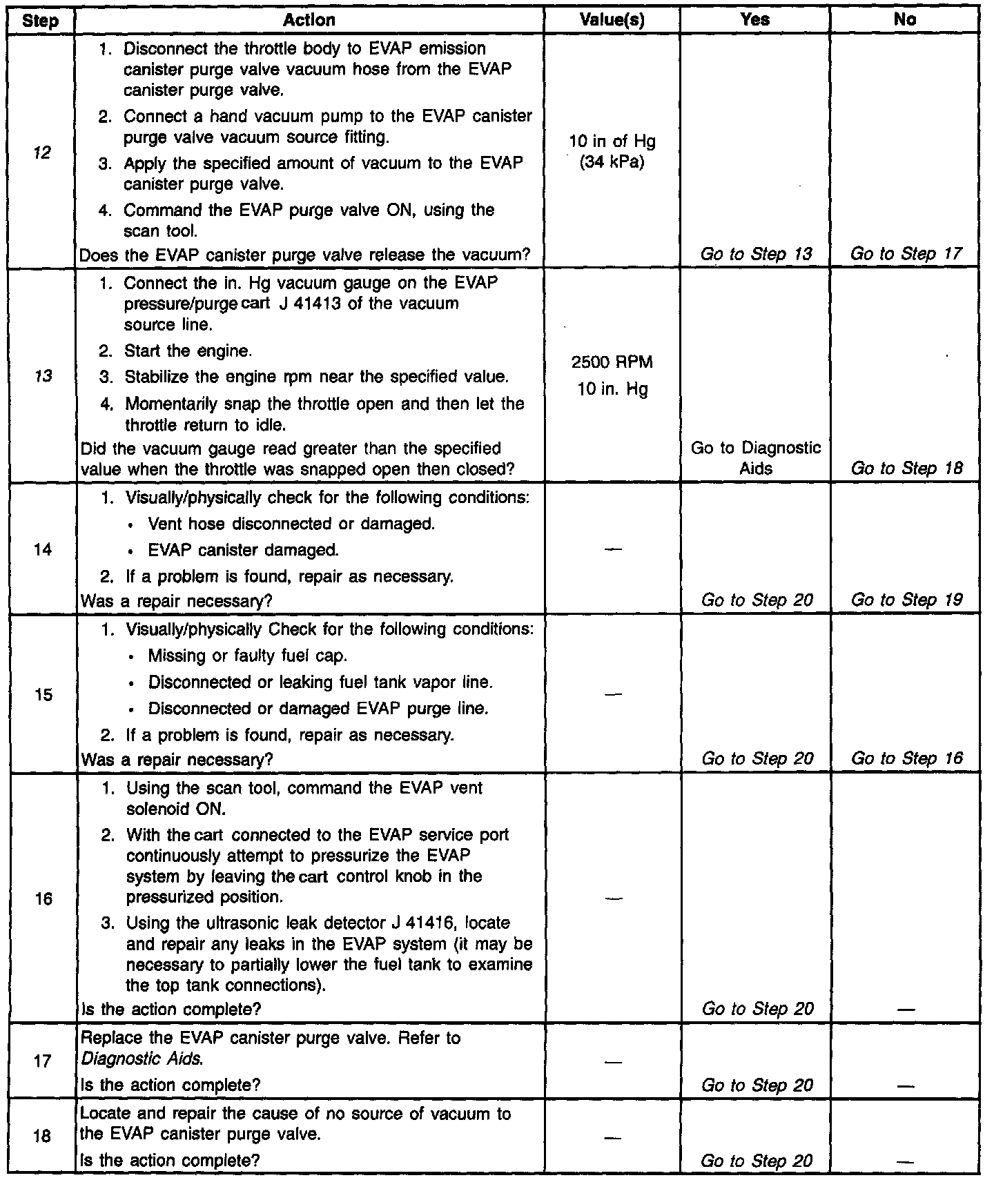 13. Checks for a stuck closed EVAP canister purge valve.