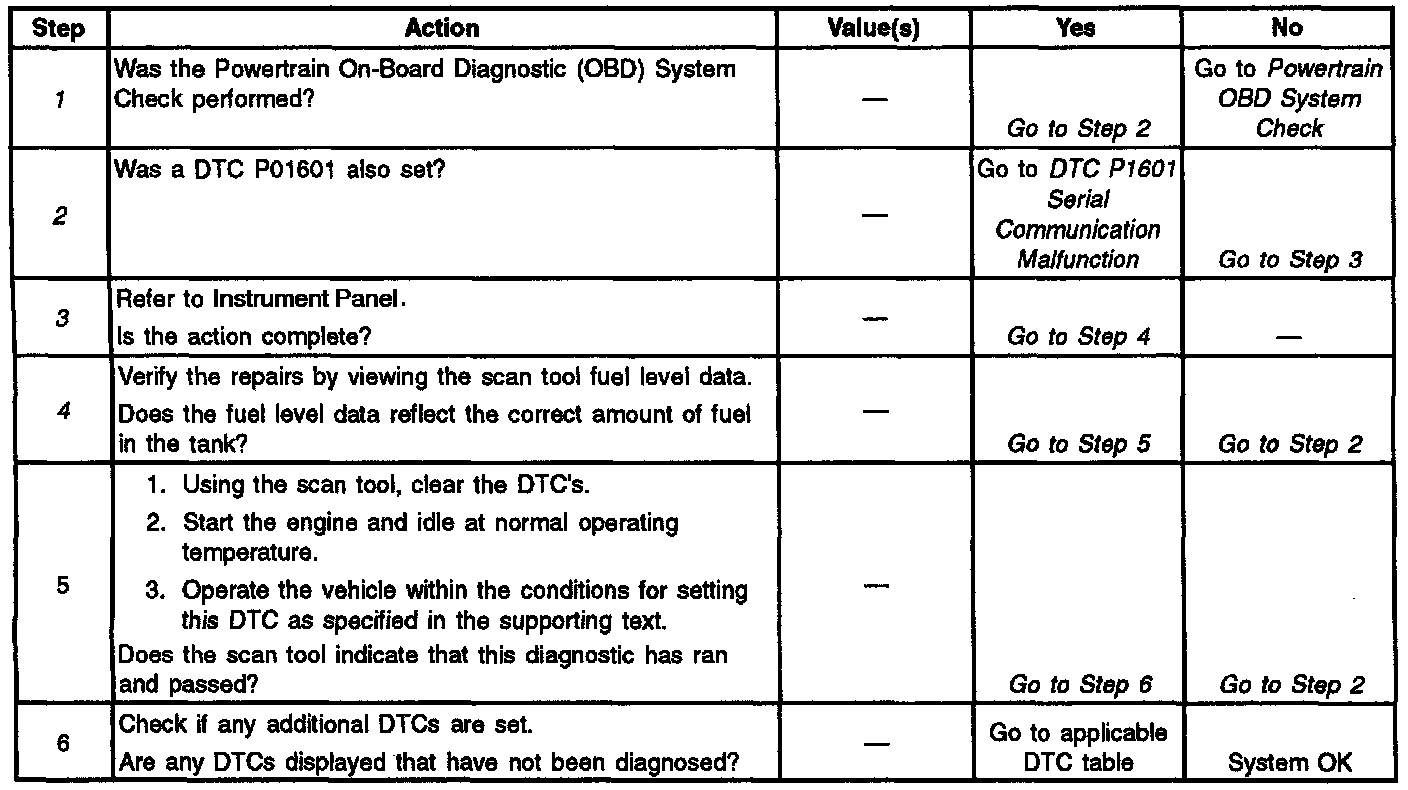 2. DTC P1601 must be diagnosed before DTC P0460 as the only problem may have been the serial communication problem and the vehicle was driven more than 120 miles before it was brought in for service.