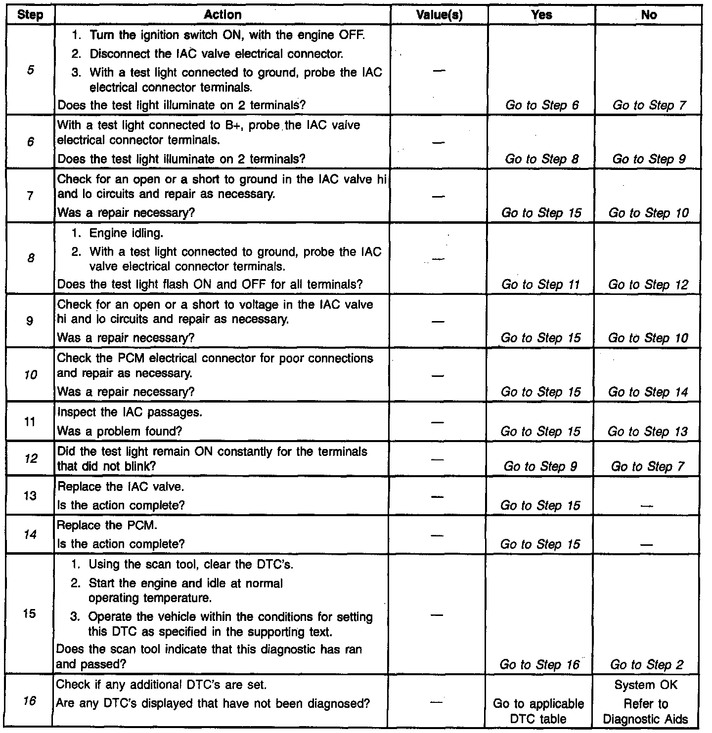 16. If no faults have been found at this point and no additional DTC's were set, refer to Diagnostic Aids for additional checks and information.