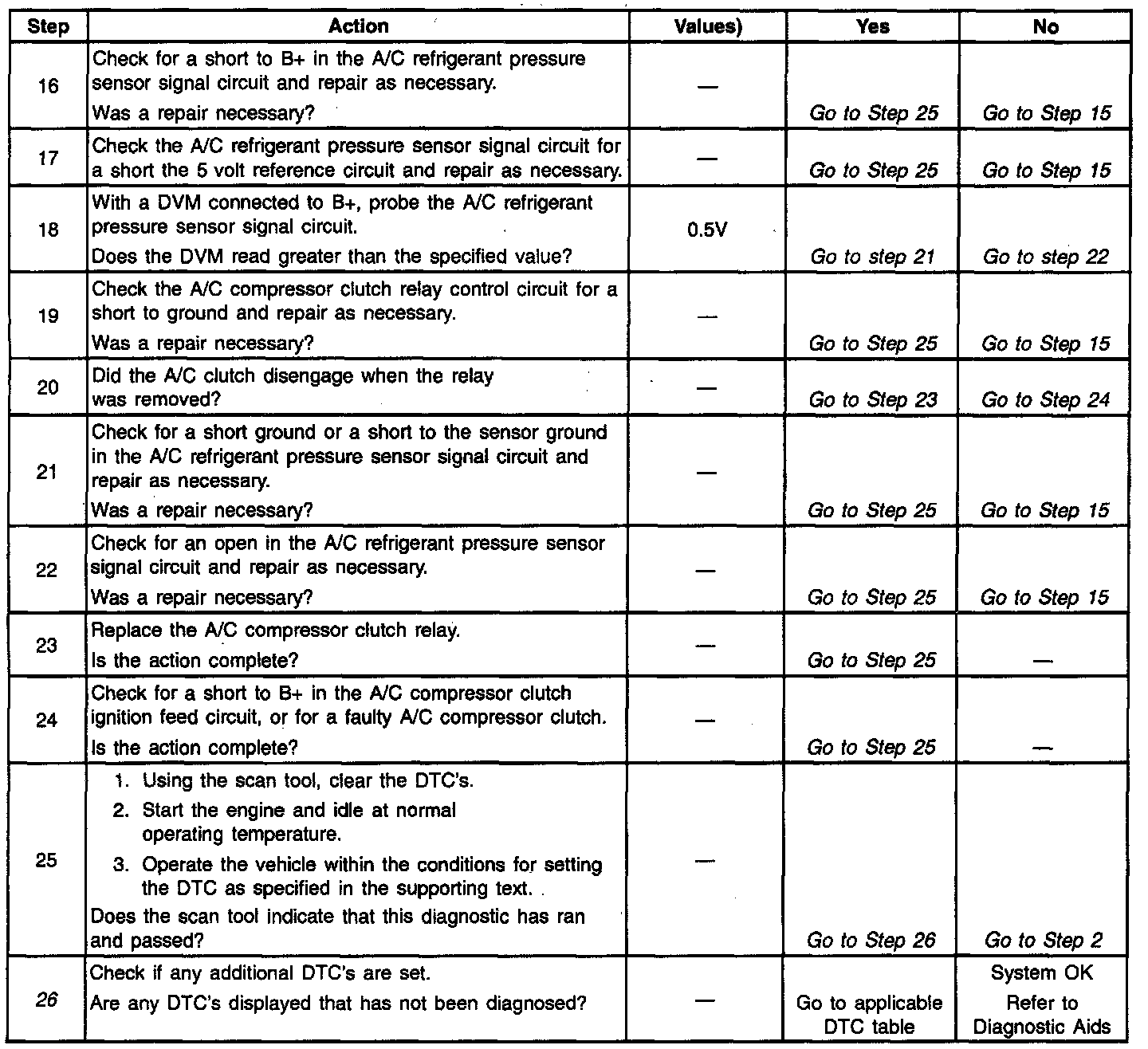 26. If no faults have been found at this point and no additional DTC's were set, refer to Diagnostic Aids for additional checks and information.