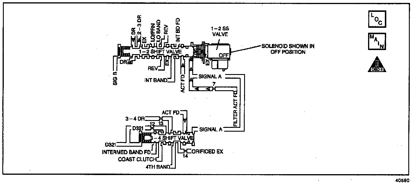 8. This Step tests for a mechanical or hydraulic problem causing the 1-2 SS valve to be stuck OFF, or the circuit to be released.