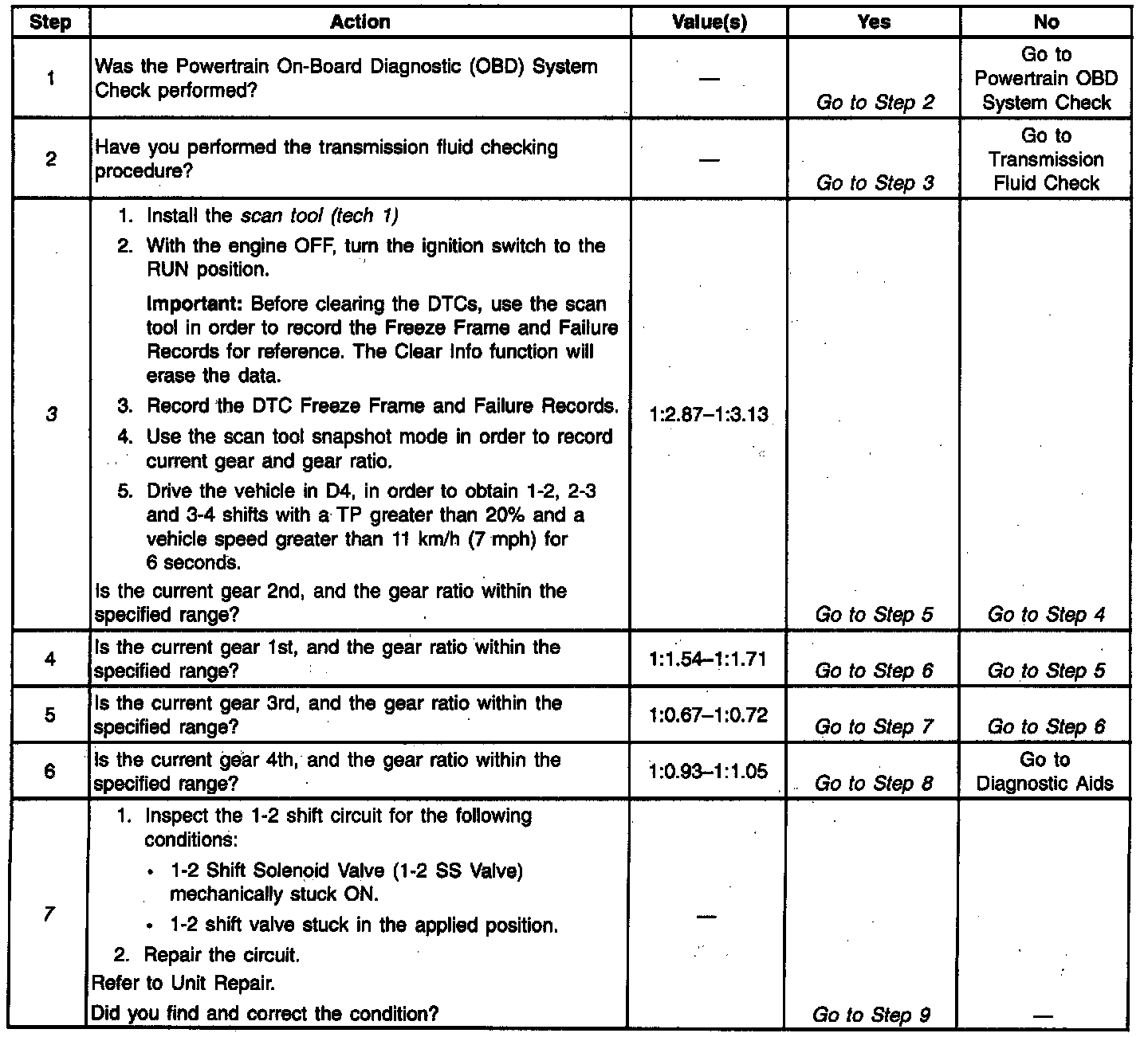 7. This Step tests for a mechanical or hydraulic problem causing the 1-2 SS valve to be stuck ON, or the circuit to be applied.