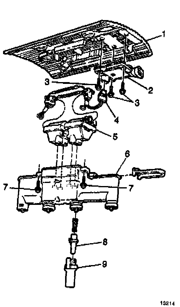 8. Install the ignition coil and the ignition control module assembly to cam housing bolts after coating the threads with 1052080.