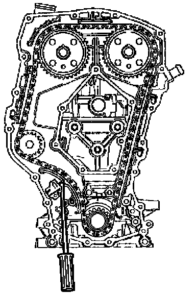 7.3. Release the tensioner plunger. The plunger should press firmly against the back of the timing chain tensioner shoe.