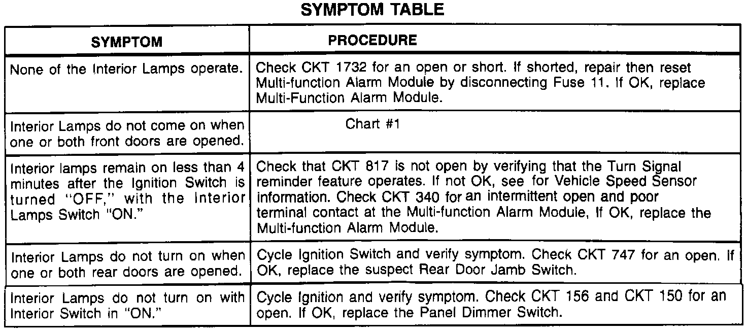 Symptom Table (Part 1 Of 2):