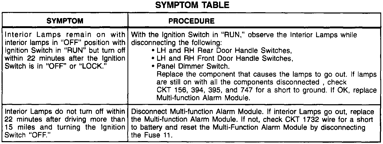 Symptom Table (Part 2 Of 2):