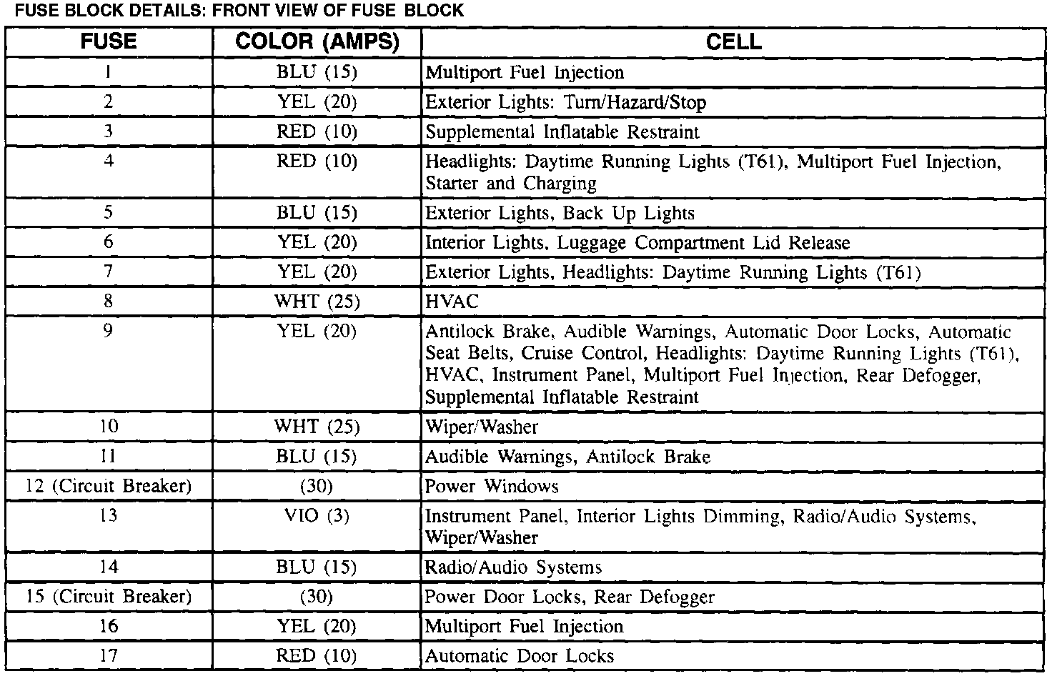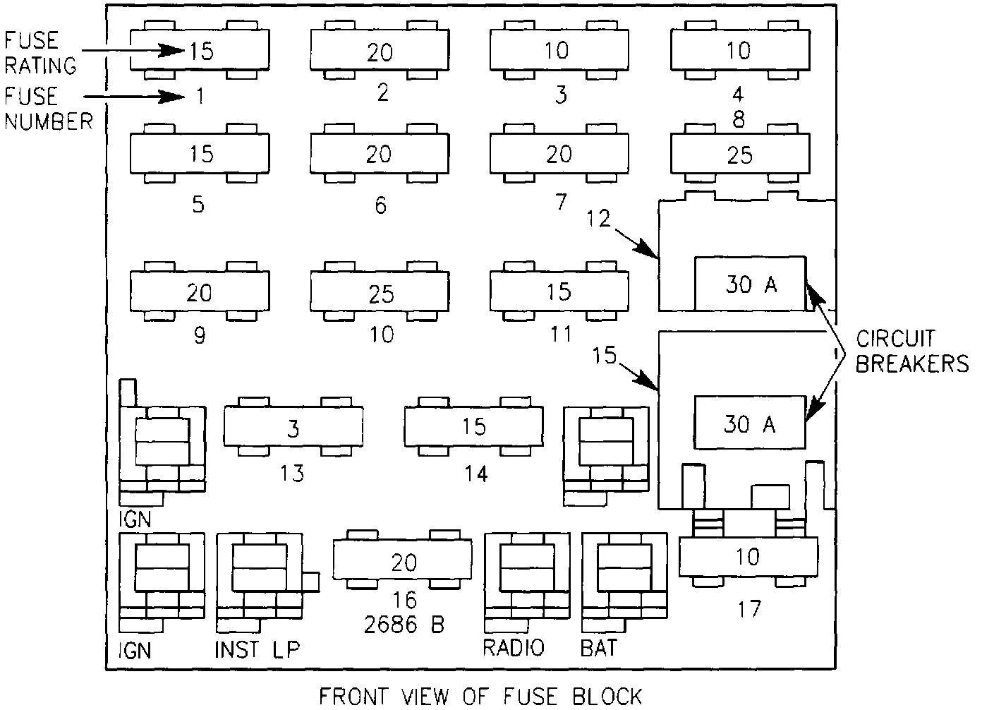Fuse Block Details: Front View Of Fuse Block: