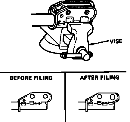 2. Enlarge bottom holes in outer flanges with a round file until holes in outer flanges match slots in inner flanges, Fig. 1.