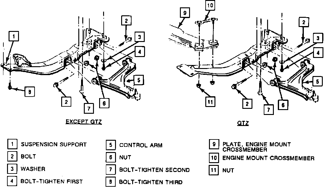 7. Bolts attaching suspension support to vehicle.