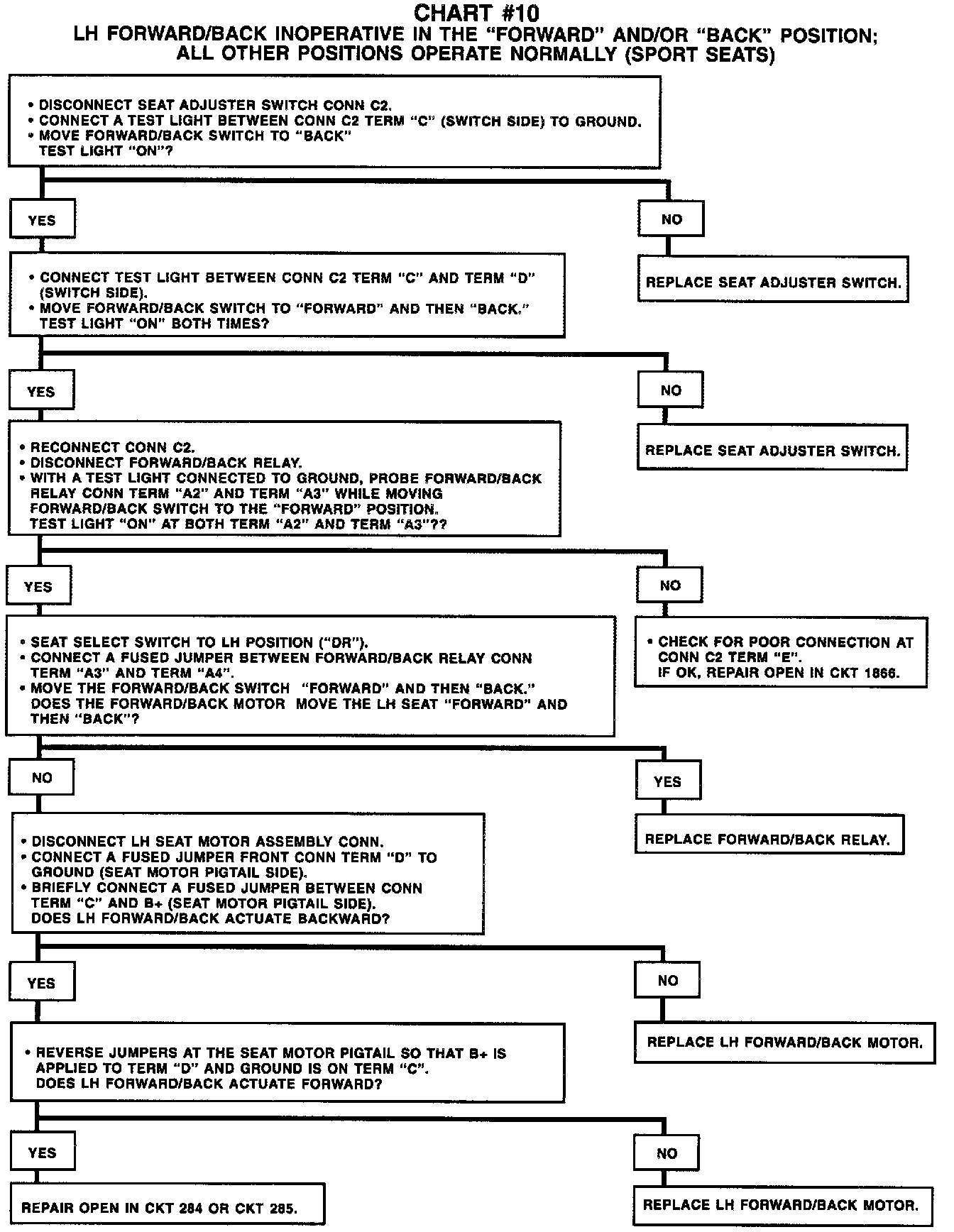 Chart #10 LH Forward/Back INOP In FWD And/Or BACK Position (Sport Seats):