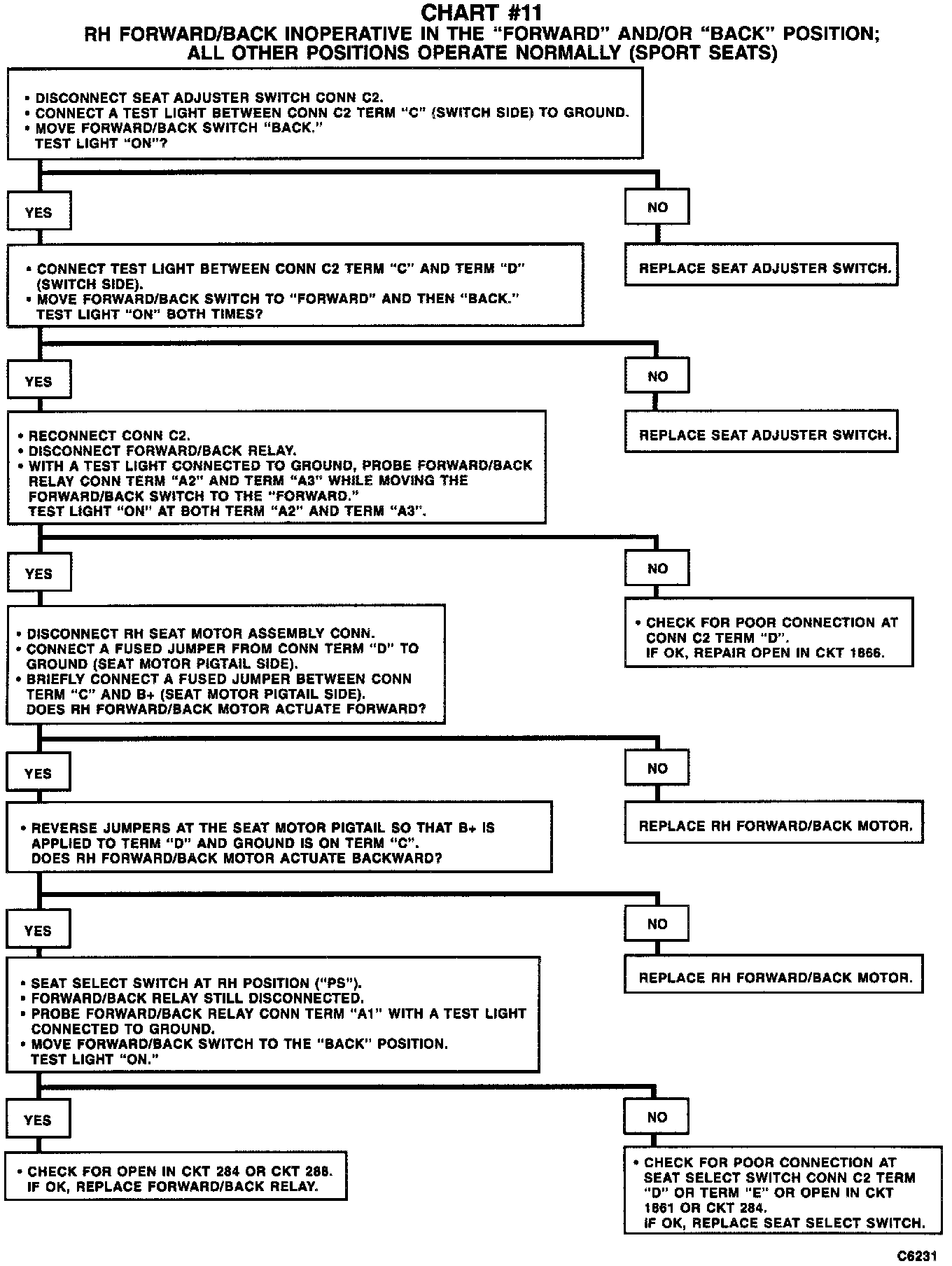 Chart #11 RH Forward/Back INOP In FWD And/Or BACK Position (Sport Seats):