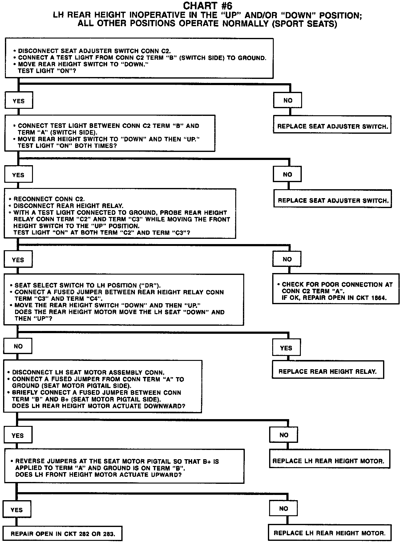 Chart #6 LH Rear Height INOP In UP And/Or DOWN Position (Sport Seats):