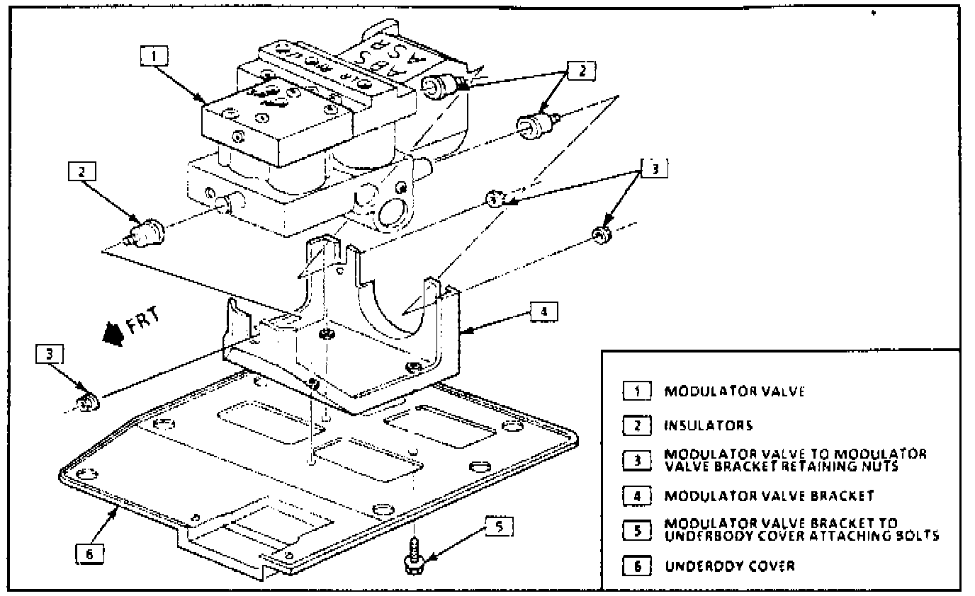 a. Torque modulator valve attaching nuts and valve bracket to underbody cover attaching bolts to 86 inch lbs.