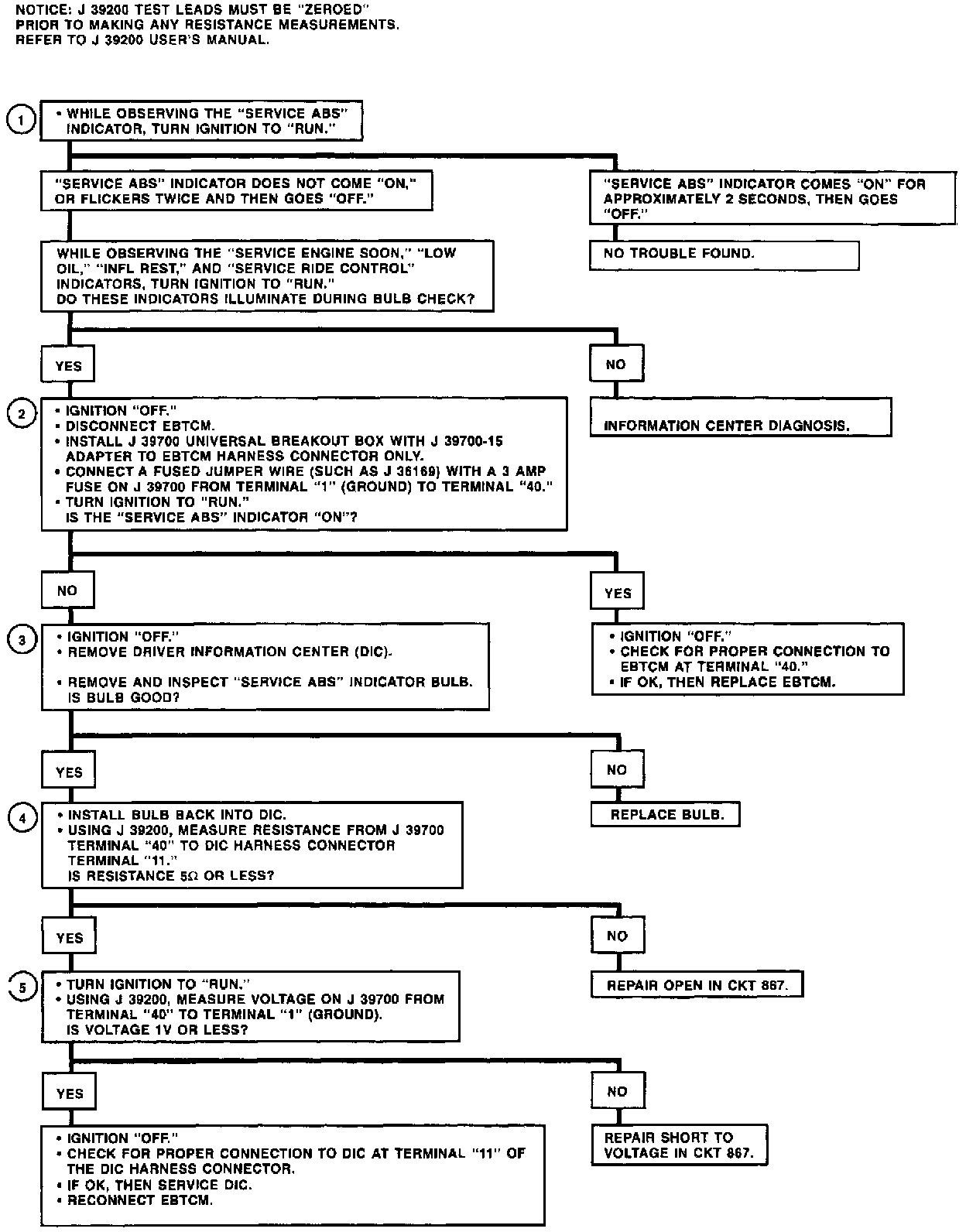 Chart B Service ABS Indic Inop/Flickering W/IGN Switch on