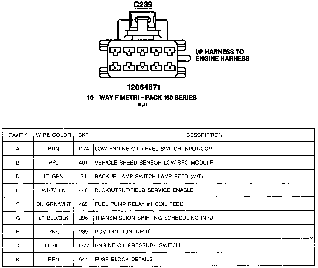 C239: Engine Harness To I/P Harness: