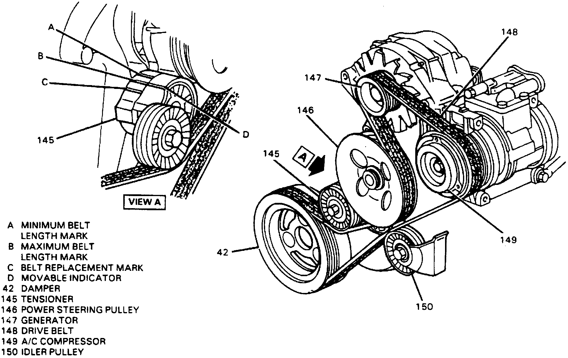 2. Reverse procedure to install. Ensure belt tension indicator marks are within limit lines on belt tensioner indicator.