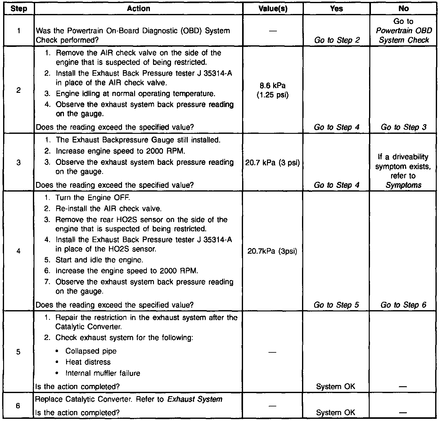 System Check - Restricted Exhaust