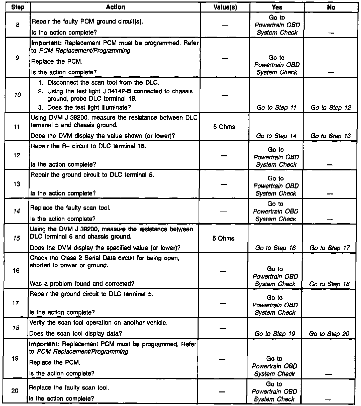 Some older scan tools are powered through a separate power cord from the cigar lighter, but the VIM gets its power and ground through the DLC connector. If this type of scan tool is being used, and the tool powers up but no data is displayed, proceed to Step 10.
