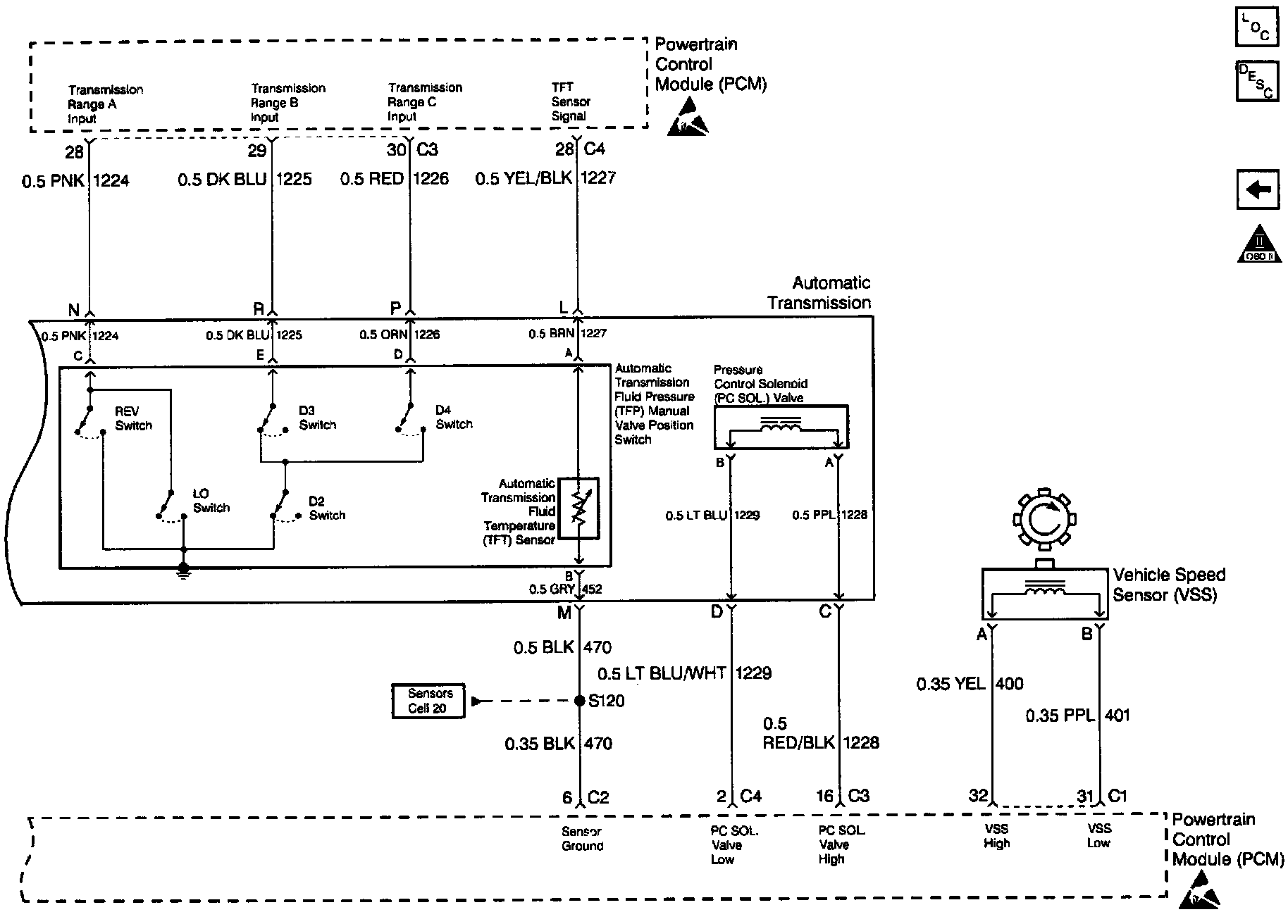 TFP Switch, TFT Sensor, PC Solenoid Valve, and VSS